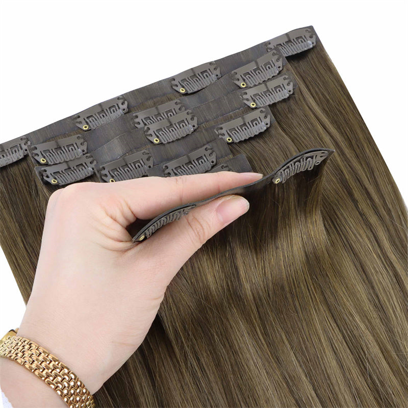 DESCRIPTION –50% thinner & virtually undetectable –Fine & thin hair types –Heat safe & easy to style –Multiple lengths and shades –100% Remy human hair WEIGHT LENGTH TOTAL PIECES CLIN-IN SET INCLUDES 130G 14” 9 1PC 4-Clip Weft – 8 Inch 2PCS 3-Clip Wefts – 6 Inch 4PCS 2-Clip Wefts – 4 Inch 2PCS 1-Clip Wefts – 1.5 Inch 130G 16” 7 1PC 4-Clip Weft – 8 Inch 2PCS 3-Clip Wefts – 6 Inch 2PCS 2-Clip Wefts – 4 Inch 2PCS 1-Clip Wefts – 1.5 Inch 130G 18” 7 1PC 4-Clip Weft – 8 Inch 2PCS 3-Clip Wefts – 6 Inch 2PCS 2-Clip Wefts – 4 Inch 2PCS 1-Clip Wefts – 1.5 Inch 150G 20” 7 1PC 4-Clip Weft – 8 Inch 2PCS 3-Clip Wefts – 6 Inch 2PCS 2-Clip Wefts – 4 Inch 2PCS 1-Clip Wefts – 1.5 Inch 150G 22” 7 1PC 4-Clip Weft – 8 Inch 2PCS 3-Clip Wefts – 6 Inch 2PCS 2-Clip Wefts – 4 Inch 2PCS 1-Clip Wefts – 1.5 Inch GOO GOO Hair Seamless clip in hair extensions are 50% thinner at the top and sit flush against the scalp. Seamless clip in hair extensions are the ideal solution if your hair is very fine, thin and has a difficult time concealing traditional clip in hair extensions.This lay-flat design is invisible, discreet and won’t damage your hair. GOO GOO Hair Seamless Clip in hair extensions have comfortable-wear clips that keep your natural hair damage-free, with no bulk, just natural-looking volume and length. It is designed in the same seven-piece weft design as our classic clip in hair extensions. These gorgeous seamless extensions come in all of our multi-tonal shades for instant volume and length at a moment’s notice. VIDEO TUTORIAL How to Wear Seamless Clip in Hair Extensions? Step 1- Prepare the hair wefts, Open the clips that are sewed on the weft, Separate your hair. Step 2- Starting at the lower back section of your head, use a tail comb or index finger to divide(horizontally part)your hair, at the lower back of the head i.e. just below one ear to the second ear. Also, you can start parting even lower, as low as you want to place the first weft. Pick up the clip hair extensions that you need. Step 3- Then repeat 1-2 steps to put the remain pu weft clip in hair extensions in different areas of your head. Step 4- Finally, put down your own hair on the partition to cover the pu hair extensions, and then gently comb the entire hair with a comb. Step 5- Then you will have a beautiful and charming hair looking. SHIPPING & RETURNS Free Shipping Worldwide. All prices on the website include FREE standard shipping to applicable countries. You can exchange or refund your order within 30 days.