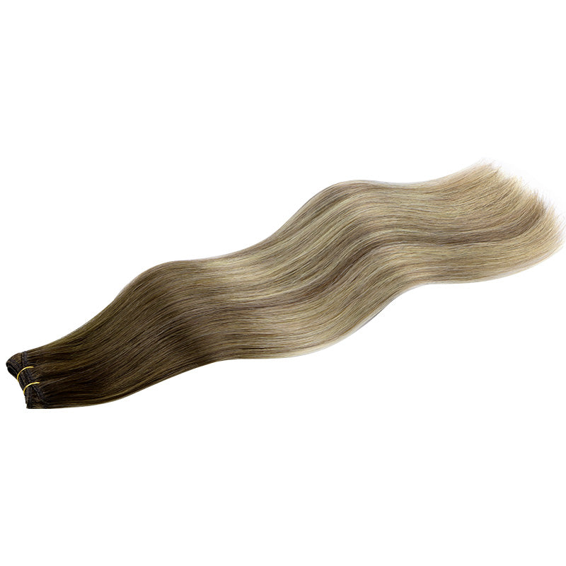 DESCRIPTION Transform your look with GOO GOO Hair Weft Hair Extensions, crafted from premium quality human hair. Our extensions offer a seamless and glamorous solution for adding length and volume to your natural locks. Available in a range of lengths from 14 to 22 inches, these extensions blend effortlessly with your own hair, creating a flawless and natural appearance. Elevate your style and turn heads with GOO GOO Hair Weft Hair Extensions – the ultimate secret to irresistible, show-stopping hair. –100% human remy hair – can be re-applied –Easy to apply in under 30 minutes –Long-lasting Durability, USA-made adhesive long-lasting to 6 months –NON-damaging, lightweight, and comfortable in the hair –Versatile styling options, can be curled, straightened, and styled –Suitable for all hair types WEIGHT LENGTH TOTAL PIECES 80G 14” 1 100G 16” 1 100G 18” 1 100G 20” 1 110G 22” 1 VIDEO TUTORIAL How to wear sew in weft hair extensions? Step 1- Hair extensions must be applied to washed clean hair. Part your hair in desired area where extension needs to be applied. Step 2- Divide your hair into sections horizontally from ear to ear, creating a top and bottom section. Clip the top section away to keep it separate. Step 3- Take a thin section of your natural hair from the bottom section and braid it tightly against your scalp. This serves as the foundation for sewing in the extensions. Step 4- Measure the weft hair extension against the back of your head, from one side to the other. Cut the weft to match the width of the section, leaving a small amount of extra space on each end. Step 5- Thread a needle with a strong, matching thread. Starting at one end of the weft, sew through the weft and the braided section of your hair, going from one side to the other. Secure the weft by looping the thread around the braid and knotting it tightly. Repeat this process along the entire width of the weft, sewing it securely to your braids. Step 6- Please Note: Take care of your sew-in hair extensions by washing and conditioning them regularly using mild, sulfate-free products. Avoid excessive heat styling and use heat protectant products to prolong the lifespan of the extensions. Three Different Ways to Install: How to Remove Weft Hair Extensions? Step 1- Gather a pair of small scissors, a seam ripper, and a wide-toothed comb. These tools will help you safely remove the sew-in extensions. Step 2- Begin by identifying the thread used to sew in the extensions. It is usually a different color from your natural hair and may be visible near the roots of the extensions. Using the small scissors or seam ripper, carefully cut the thread along the weft of the extensions. Take your time to avoid cutting your natural hair. Step 3- Once the thread is cut, gently pull the weft away from your natural hair, starting from one end and working your way to the other. If the weft is tightly sewn, use the seam ripper to carefully undo the stitching. Step 4- After removing each weft, use a wide-toothed comb to gently detangle any knots or tangles that may have formed during the removal process. Start from the ends and work your way up to the roots. How To Wash Comb your hair with a wide-tooth comb. Wash your hair extensions with warm water and sulfate free conditioner. Wash your hair by holding gently. Do not rub your hair. Comb your hair extensions with a wide-tooth comb from the bottom to the top of the hair extensions. Gently hold the hair with your hand and squeeze the water. Beat the hair with a towel until the hair is dry. Kindly Reminder: Please do not use colored shampoos (such as purple shampoo), to wash very light colored hair extensions. Because this may stain the hair extensions. SHIPPING & RETURNS Free Shipping Worldwide. All prices on the website include FREE standard shipping to applicable countries. You can exchange or refund your order within 30 days. *Hope you could understand that if your order is out of stock in the warehouse, we will ship it directly from the factory. Usually takes 3-5 business days to deliver. FAQ 1. Is GOO GOO hair 100% human hair? Yes, GOO GOO Hair is made from 100% remy human hair. We take pride in providing our customers with high-quality hair extensions that are sourced ethically and made from genuine human hair. Our hair extensions undergo a rigorous process to ensure that they are of the highest standard.2. Can I dye/color my Weft Hair Extensions?Human hair can be coloured, but we do not recommend it. Any colouring of the hair extensions is done entirely at your own risk. GOO GOO will not accept any liability for hair extensions that have been coloured or tinted.3. Can I heat my Weft Hair Extensions?Keep in mind that use of heat styling and other hair products will cause damage to your extensions over time. Do not leave on heat for extended time periods, extensions can burn just like your own hair.