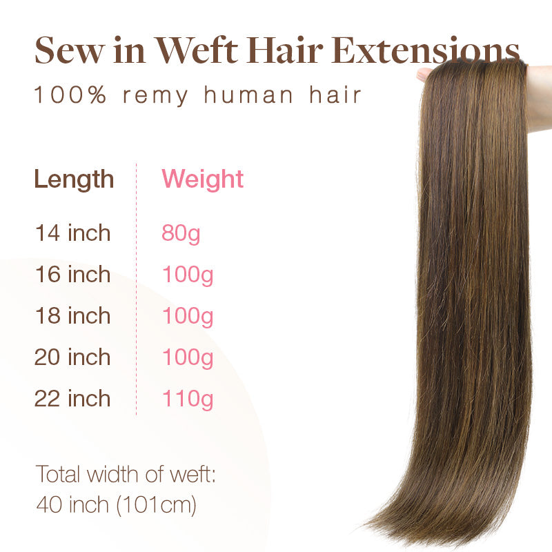 DESCRIPTION Transform your look with GOO GOO Hair Weft Hair Extensions, crafted from premium quality human hair. Our extensions offer a seamless and glamorous solution for adding length and volume to your natural locks. Available in a range of lengths from 14 to 22 inches, these extensions blend effortlessly with your own hair, creating a flawless and natural appearance. Elevate your style and turn heads with GOO GOO Hair Weft Hair Extensions – the ultimate secret to irresistible, show-stopping hair. –100% human remy hair – can be re-applied –Easy to apply in under 30 minutes –Long-lasting Durability, USA-made adhesive long-lasting to 6 months –NON-damaging, lightweight, and comfortable in the hair –Versatile styling options, can be curled, straightened, and styled –Suitable for all hair types WEIGHT LENGTH TOTAL PIECES 80G 14” 1 100G 16” 1 100G 18” 1 100G 20” 1 110G 22” 1 VIDEO TUTORIAL How to wear sew in weft hair extensions? Step 1- Hair extensions must be applied to washed clean hair. Part your hair in desired area where extension needs to be applied. Step 2- Divide your hair into sections horizontally from ear to ear, creating a top and bottom section. Clip the top section away to keep it separate. Step 3- Take a thin section of your natural hair from the bottom section and braid it tightly against your scalp. This serves as the foundation for sewing in the extensions. Step 4- Measure the weft hair extension against the back of your head, from one side to the other. Cut the weft to match the width of the section, leaving a small amount of extra space on each end. Step 5- Thread a needle with a strong, matching thread. Starting at one end of the weft, sew through the weft and the braided section of your hair, going from one side to the other. Secure the weft by looping the thread around the braid and knotting it tightly. Repeat this process along the entire width of the weft, sewing it securely to your braids. Step 6- Please Note: Take care of your sew-in hair extensions by washing and conditioning them regularly using mild, sulfate-free products. Avoid excessive heat styling and use heat protectant products to prolong the lifespan of the extensions. Three Different Ways to Install: How to Remove Weft Hair Extensions? Step 1- Gather a pair of small scissors, a seam ripper, and a wide-toothed comb. These tools will help you safely remove the sew-in extensions. Step 2- Begin by identifying the thread used to sew in the extensions. It is usually a different color from your natural hair and may be visible near the roots of the extensions. Using the small scissors or seam ripper, carefully cut the thread along the weft of the extensions. Take your time to avoid cutting your natural hair. Step 3- Once the thread is cut, gently pull the weft away from your natural hair, starting from one end and working your way to the other. If the weft is tightly sewn, use the seam ripper to carefully undo the stitching. Step 4- After removing each weft, use a wide-toothed comb to gently detangle any knots or tangles that may have formed during the removal process. Start from the ends and work your way up to the roots. How To Wash Comb your hair with a wide-tooth comb. Wash your hair extensions with warm water and sulfate free conditioner. Wash your hair by holding gently. Do not rub your hair. Comb your hair extensions with a wide-tooth comb from the bottom to the top of the hair extensions. Gently hold the hair with your hand and squeeze the water. Beat the hair with a towel until the hair is dry. Kindly Reminder: Please do not use colored shampoos (such as purple shampoo), to wash very light colored hair extensions. Because this may stain the hair extensions. SHIPPING & RETURNS Free Shipping Worldwide. All prices on the website include FREE standard shipping to applicable countries. You can exchange or refund your order within 30 days. *Hope you could understand that if your order is out of stock in the warehouse, we will ship it directly from the factory. Usually takes 3-5 business days to deliver. FAQ 1. Is GOO GOO hair 100% human hair? Yes, GOO GOO Hair is made from 100% remy human hair. We take pride in providing our customers with high-quality hair extensions that are sourced ethically and made from genuine human hair. Our hair extensions undergo a rigorous process to ensure that they are of the highest standard.2. Can I dye/color my Weft Hair Extensions?Human hair can be coloured, but we do not recommend it. Any colouring of the hair extensions is done entirely at your own risk.GOO GOO will not accept any liability for hair extensions that have been coloured or tinted.3. Can I heat my Weft Hair Extensions?Keep in mind that use of heat styling and other hair products will cause damage to your extensions over time. Do not leave on heat for extended time periods, extensions can burn just like your own hair.