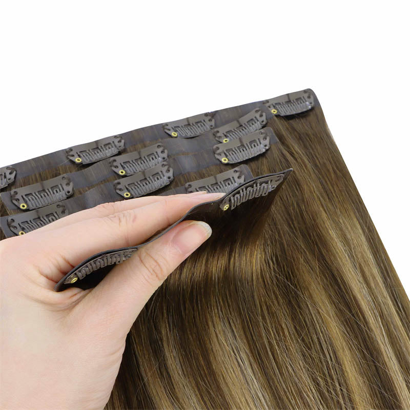 DESCRIPTION –50% thinner & virtually undetectable –Fine & thin hair types –Heat safe & easy to style –Multiple lengths and shades –100% Remy human hair WEIGHT LENGTH TOTAL PIECES CLIN-IN SET INCLUDES 130G 14” 9 1PC 4-Clip Weft – 8 Inch 2PCS 3-Clip Wefts – 6 Inch 4PCS 2-Clip Wefts – 4 Inch 2PCS 1-Clip Wefts – 1.5 Inch 130G 16” 7 1PC 4-Clip Weft – 8 Inch 2PCS 3-Clip Wefts – 6 Inch 2PCS 2-Clip Wefts – 4 Inch 2PCS 1-Clip Wefts – 1.5 Inch 130G 18” 7 1PC 4-Clip Weft – 8 Inch 2PCS 3-Clip Wefts – 6 Inch 2PCS 2-Clip Wefts – 4 Inch 2PCS 1-Clip Wefts – 1.5 Inch 150G 20” 7 1PC 4-Clip Weft – 8 Inch 2PCS 3-Clip Wefts – 6 Inch 2PCS 2-Clip Wefts – 4 Inch 2PCS 1-Clip Wefts – 1.5 Inch 150G 22” 7 1PC 4-Clip Weft – 8 Inch 2PCS 3-Clip Wefts – 6 Inch 2PCS 2-Clip Wefts – 4 Inch 2PCS 1-Clip Wefts – 1.5 Inch GOO GOO Hair Seamless clip in hair extensions are 50% thinner at the top and sit flush against the scalp. Seamless clip in hair extensions are the ideal solution if your hair is very fine, thin and has a difficult time concealing traditional clip in hair extensions.This lay-flat design is invisible, discreet and won’t damage your hair. GOO GOO Hair Seamless Clip in hair extensions have comfortable-wear clips that keep your natural hair damage-free, with no bulk, just natural-looking volume and length. It is designed in the same seven-piece weft design as our classic clip in hair extensions. These gorgeous seamless extensions come in all of our multi-tonal shades for instant volume and length at a moment’s notice. VIDEO TUTORIAL How to Wear Seamless Clip in Hair Extensions? Step 1- Prepare the hair wefts, Open the clips that are sewed on the weft, Separate your hair. Step 2- Starting at the lower back section of your head, use a tail comb or index finger to divide(horizontally part)your hair, at the lower back of the head i.e. just below one ear to the second ear. Also, you can start parting even lower, as low as you want to place the first weft. Pick up the clip hair extensions that you need. Step 3- Then repeat 1-2 steps to put the remain pu weft clip in hair extensions in different areas of your head. Step 4- Finally, put down your own hair on the partition to cover the pu hair extensions, and then gently comb the entire hair with a comb. Step 5- Then you will have a beautiful and charming hair looking. SHIPPING & RETURNS Free Shipping Worldwide. All prices on the website include FREE standard shipping to applicable countries. You can exchange or refund your order within 30 days.