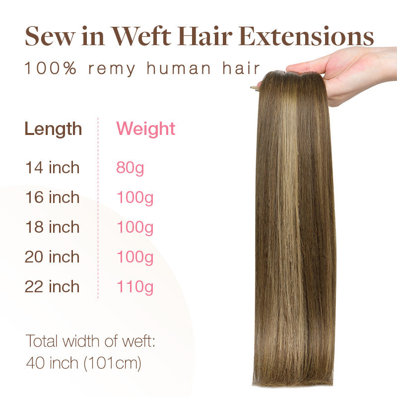 DESCRIPTION Transform your look with GOO GOO Hair Weft Hair Extensions, crafted from premium quality human hair. Our extensions offer a seamless and glamorous solution for adding length and volume to your natural locks. Available in a range of lengths from 14 to 22 inches, these extensions blend effortlessly with your own hair, creating a flawless and natural appearance. Elevate your style and turn heads with GOO GOO Hair Weft Hair Extensions – the ultimate secret to irresistible, show-stopping hair. –100% human remy hair – can be re-applied –Easy to apply in under 30 minutes –Long-lasting Durability, USA-made adhesive long-lasting to 6 months –NON-damaging, lightweight, and comfortable in the hair –Versatile styling options, can be curled, straightened, and styled –Suitable for all hair types WEIGHT LENGTH TOTAL PIECES 80G 14” 1 100G 16” 1 100G 18” 1 100G 20” 1 110G 22” 1 VIDEO TUTORIAL How to wear sew in weft hair extensions? Step 1- Hair extensions must be applied to washed clean hair. Part your hair in desired area where extension needs to be applied. Step 2- Divide your hair into sections horizontally from ear to ear, creating a top and bottom section. Clip the top section away to keep it separate. Step 3- Take a thin section of your natural hair from the bottom section and braid it tightly against your scalp. This serves as the foundation for sewing in the extensions. Step 4- Measure the weft hair extension against the back of your head, from one side to the other. Cut the weft to match the width of the section, leaving a small amount of extra space on each end. Step 5- Thread a needle with a strong, matching thread. Starting at one end of the weft, sew through the weft and the braided section of your hair, going from one side to the other. Secure the weft by looping the thread around the braid and knotting it tightly. Repeat this process along the entire width of the weft, sewing it securely to your braids. Step 6- Please Note: Take care of your sew-in hair extensions by washing and conditioning them regularly using mild, sulfate-free products. Avoid excessive heat styling and use heat protectant products to prolong the lifespan of the extensions. Three Different Ways to Install: How to Remove Weft Hair Extensions? Step 1- Gather a pair of small scissors, a seam ripper, and a wide-toothed comb. These tools will help you safely remove the sew-in extensions. Step 2- Begin by identifying the thread used to sew in the extensions. It is usually a different color from your natural hair and may be visible near the roots of the extensions. Using the small scissors or seam ripper, carefully cut the thread along the weft of the extensions. Take your time to avoid cutting your natural hair. Step 3- Once the thread is cut, gently pull the weft away from your natural hair, starting from one end and working your way to the other. If the weft is tightly sewn, use the seam ripper to carefully undo the stitching. Step 4- After removing each weft, use a wide-toothed comb to gently detangle any knots or tangles that may have formed during the removal process. Start from the ends and work your way up to the roots. How To Wash Comb your hair with a wide-tooth comb. Wash your hair extensions with warm water and sulfate free conditioner. Wash your hair by holding gently. Do not rub your hair. Comb your hair extensions with a wide-tooth comb from the bottom to the top of the hair extensions. Gently hold the hair with your hand and squeeze the water. Beat the hair with a towel until the hair is dry. Kindly Reminder: Please do not use colored shampoos (such as purple shampoo), to wash very light colored hair extensions. Because this may stain the hair extensions. SHIPPING & RETURNS Free Shipping Worldwide. All prices on the website include FREE standard shipping to applicable countries. You can exchange or refund your order within 30 days. *Hope you could understand that if your order is out of stock in the warehouse, we will ship it directly from the factory. Usually takes 3-5 business days to deliver. FAQ 1. Is GOO GOO hair 100% human hair? Yes, GOO GOO Hair is made from 100% remy human hair. We take pride in providing our customers with high-quality hair extensions that are sourced ethically and made from genuine human hair. Our hair extensions undergo a rigorous process to ensure that they are of the highest standard.2. Can I dye/color my Weft Hair Extensions?Human hair can be coloured, but we do not recommend it. Any colouring of the hair extensions is done entirely at your own risk.GOO GOO will not accept any liability for hair extensions that have been coloured or tinted.3. Can I heat my Weft Hair Extensions?Keep in mind that use of heat styling and other hair products will cause damage to your extensions over time. Do not leave on heat for extended time periods, extensions can burn just like your own hair.