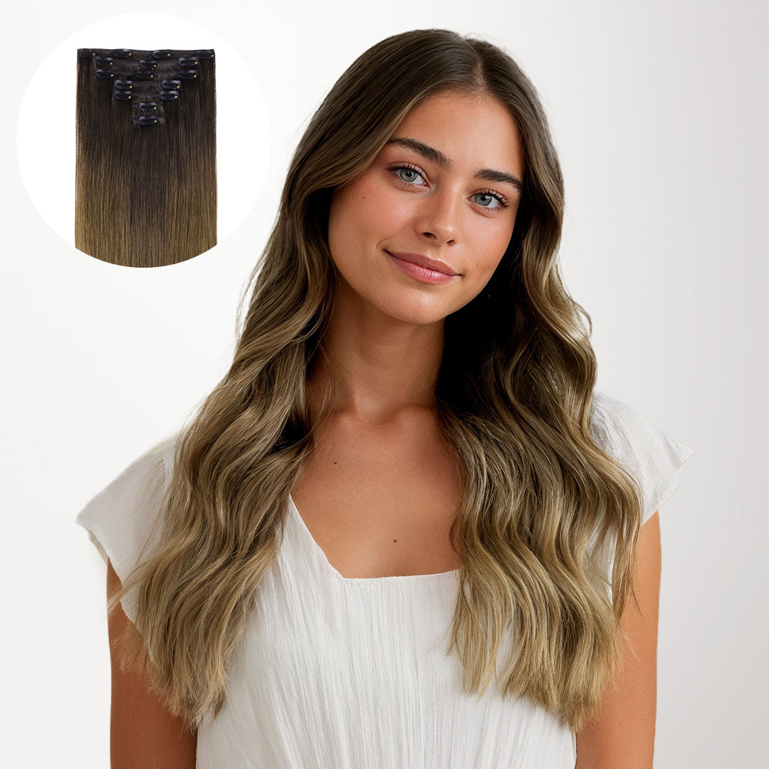 DESCRIPTION –Fuller, longer hair instantly –100% Remy Human Hair –Easy to clip in –Multiple lengths & shades –Heat safe and holds curls –Perfect for all hair type Clip-In Set Includes: 1PC 5-Clip Weft – 8 Inch 2PCS 4-Clip Wefts – 6 Inch 2PCS 2-Clip Wefts – 4 Inch 2PCS 1-Clip Wefts – 2 Inch WEIGHT LENGTH TOTAL PIECES 120G 14”16”18”20”22”24” 7 GOO GOO Hair clip-in hair extensions are the perfect solution for those who want longer, fuller, more beautiful hair instantly. Our hair extensions are easy to clip-on in just minutes, without the hassle of glues, tapes or weaves. There is no commitment, wear them as often as you like. They are easy to use, we have a wide color selection. GOO GOO Hair Clip In Hair Extensions are luxurious extensions that have specially designed small clips with a unique silicone strip that won’t damage your natural hair or scalp. This allows them to stay securely in place without need for hairspray or teasing of your natural hair, even if you have fine or thin hair in most cases. Because all of our extensions are only made with real human hair, they can be washed, styled, blow dried, flat ironed, and/or curled using hot tools, just like your own hair. TUTORIAL How to wear clip in hair extensions? Step 1- Separate your hair: Starting at the lower back section of your head, use a tail comb or index finger to divide(horizontally part)your hair, at the lower back of the head i.e. just below one ear to the second ear. Also, you can start parting even lower, as low as you want to place the first weft. Step 2- Choose a suitable width clip hair and open the clips that are sewed on the weft. Step 3- Prepare the hair wefts and wear on your hair, then check if wear firm. Step 4- Release the hair you held out of the way and create a new parting. Repeat the first to third steps to wear on the other side of the head. Each time leave the extra hair, on top of your head. Step 5- After wear all hair pieces put your hair down and comb neatly. You will have a good looking in an instant. How To Wash Clip in Hair Extensions Comb your hair with a wide-tooth comb. Wash your hair extensions with warm water and sulfate free conditioner. Wash your hair by holding gently. Do not rub your hair. Comb your hair extensions with a wide-tooth comb from the bottom to the top of the hair extensions. Gently hold the hair with your hand and squeeze the water. Beat the hair with a towel until the hair is dry. Kindly Reminder: Please do not use colored shampoos (such as purple shampoo), to wash very light colored hair extensions. Because this may stain the hair extensions. SHIPPING & RETURNS Free Shipping Worldwide. All prices on the website include FREE standard shipping to applicable countries. You can exchange or refund your order within 30 days. FAQ 1. What is the difference between each set of Clip In Hair Extensions?All of our clip in hair extensions are made from the highest grade 100% Remy human hair. The main difference between each type are the weight, construction, and thickness of the extensions.Classic Clip in Hair Extensions 120gThese extensions weigh 120 grams and are the lightest option among the ones you listed. They typically provide a moderate amount of volume and length to your hair.Seamless Clip in Hair ExtensionsSeamless clip-in extensions are designed to have a smooth, seamless appearance when applied. They are made with a weft that is thinner and more flexible, which allows for a more natural blend with your own hair. Classic Clip in Hair Extensions 150gThese extensions weigh 150 grams, offering more hair and volume compared to the 120g option. They are suitable for those who desire a fuller and thicker look.Double Drawn Clip ins 160gAre made with hair strands that have been sorted to ensure that the majority of shorter hairs are removed. This creates extensions that have a consistent thickness from top to bottom and provide a fuller appearance. 2. Can I shower with Clip In Hair Extensions? It’s best to remove your clip-in hair extensions when showering so that they do not fall out. Putting them back in is very easy and takes 5 minutes or less. 3. Is GOO GOO hair 100% human hair?Yes, GOO GOO Hair is made from 100% remy human hair. We take pride in providing our customers with high-quality hair extensions that are sourced ethically and made from genuine human hair. Our hair extensions undergo a rigorous process to ensure that they are of the highest standard. 4. How to keep my Clip In Hair Extensions untangle?Dear, because of dryness, oil, dirt build-up, salt, chlorine, the hair will tangle. Wrong combing method and high temperature iron on the hair also easily cause the hair tangle. We suggest that wash your hair 1-2 times per week, use wide tooth comb on the hair to comb the ends of the hair gently from the bottom, then from the middle, and finally from the root to the ends of the hair silky. or consult your stylist for more help, regularly trim the bottom of the hair and maintain the hair with hair oil. 5. Can I have a colour match? Sure! We would be more than happy to provide you with a colour match. If you could please send over 2-3 pictures of your hair, including the ends to our Colour Match Experts and they will get this information across to you as soon as possible.Please ensure the images are taken in natural light without the use of the flash or any filters and advise which type of extensions you are looking for.Whilst we endeavour to give the best advice for colour matching we will not be held responsible for any disparity in colour matching. Colour Match Swatches can be purchased on our website for a more accurate match. 6. How long should my hair extensions last? The lifespan of GOO GOO Hair extensions is determined by how much you wear them and how well you take care of them. Usually, hair extensions last 6 to 12 months, depending on how often you use them. 7. Can I heat my hair extensions? Our Hair is real human hair and can be hea