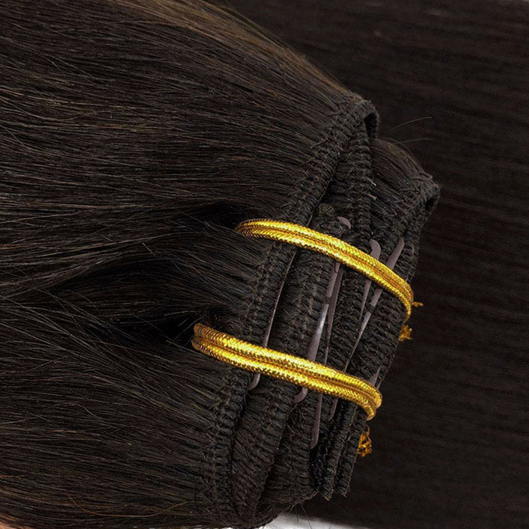 DESCRIPTION –Fuller, longer hair instantly –100% Remy Human Hair –Easy to clip in –Multiple lengths & shades –Heat safe and holds curls –Perfect for all hair type 120G Clip-In Set Includes: 1PC 5-Clip Weft – 8 Inch 2PCS 4-Clip Wefts – 6 Inch 2PCS 2-Clip Wefts – 4 Inch 2PCS 1-Clip Wefts – 2 Inch WEIGHT LENGTH TOTAL PIECES 120G 14”16”18”20”22”24” 7 GOO GOO Hair clip-in hair extensions are the perfect solution for those who want longer, fuller, more beautiful hair instantly. Our hair extensions are easy to clip-on in just minutes, without the hassle of glues, tapes or weaves. There is no commitment, wear them as often as you like. They are easy to use, we have a wide color selection. GOO GOO Hair Clip In Hair Extensions are luxurious extensions that have specially designed small clips with a unique silicone strip that won’t damage your natural hair or scalp. This allows them to stay securely in place without need for hairspray or teasing of your natural hair, even if you have fine or thin hair in most cases. Because all of our extensions are only made with real human hair, they can be washed, styled, blow dried, flat ironed, and/or curled using hot tools, just like your own hair. TUTORIAL How to wear clip in hair extensions? Step 1- Separate your hair: Starting at the lower back section of your head, use a tail comb or index finger to divide(horizontally part)your hair, at the lower back of the head i.e. just below one ear to the second ear. Also, you can start parting even lower, as low as you want to place the first weft. Step 2- Choose a suitable width clip hair and open the clips that are sewed on the weft. Step 3- Prepare the hair wefts and wear on your hair, then check if wear firm. Step 4- Release the hair you held out of the way and create a new parting. Repeat the first to third steps to wear on the other side of the head. Each time leave the extra hair, on top of your head. Step 5- After wear all hair pieces put your hair down and comb neatly. You will have a good looking in an instant. How To Wash Clip in Hair Extensions Comb your hair with a wide-tooth comb. Wash your hair extensions with warm water and sulfate free conditioner. Wash your hair by holding gently. Do not rub your hair. Comb your hair extensions with a wide-tooth comb from the bottom to the top of the hair extensions. Gently hold the hair with your hand and squeeze the water. Beat the hair with a towel until the hair is dry. Kindly Reminder: Please do not use colored shampoos (such as purple shampoo), to wash very light colored hair extensions. Because this may stain the hair extensions. SHIPPING & RETURNS Free Shipping Worldwide. All prices on the website include FREE standard shipping to applicable countries. You can exchange or refund your order within 30 days.