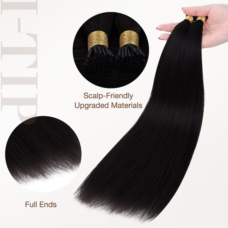 DESCRIPTION High Quality Remy Hair: I tip hair extensions are made of 100% remy human hair, the high quality help to reduce tangling and gives the hair a natural look and feel. The service life is 3-4 months longer than ordinary hair. High Quality Italian Keratin Tip:-Durability: Italian keratin is known for its superior quality and durability. It doesn’t break down easily, ensuring that the extensions stay in place for an extended period.-Gentle on Hair: Italian keratin is gentle on natural hair, reducing the risk of damage when applied or removed properly. Length Weight Quantity Wearing Tools 14″-16″ 50g 100strands/pack (Total 1 pack) Total 120 beads 18″-24″ 50g 50strands/pack (Total 1 pack) Total 60 beads 14″-16″ 100g 100strands/pack (Total 2 packs) Total 240 beads 18″-24″ 100g 50strands/pack (Total 2 packs) Total 120 beads I Tip hair extensions do not require heat or glue, but use micro-bead technology; Simply clamp them gently with pliers to enjoy long-lasting and strong results without causing any damage to your natural hairTo maintain the best results, we recommend re-clamping the micro-beads every 4-6 weeks to extend the life. Kindly Note: Due to different monitors and lights, the actual item you receive may have a slight color difference, which is normal. If you are indecisive about how to choose a matched color, please contact us directly. VIDEO TUTORIAL 1.How to install I Tip hair extensions? Tools You’ll Need:Beads or micro rings (silicone-lined are preferred for better grip)Pliers (for securing the beads)Loop tool or pulling needleSectioning clipsComb (for sectioning and parting the hair)Step 1-Wash and dry your hair thoroughly. Avoid using conditioner on the roots as it can make the hair too slippery for the beads. And ensure your hair is tangle-free by brushing it. Step 2-Divide your hair into sections, starting from the bottom and working your way up. Use clips to hold the upper sections in place. Take a small section of hair where you want to install the extension. Step 3-Take a small section of hair where you want to install the extension. Thread the small section of your natural hair through the loop tool, then pull it through the bead, sliding the bead close to the scalp. Step 4-Insert the I-tip extension into the bead alongside your natural hair. Make sure the tip is secure inside the bead. Step 5-Using the pliers, clamp down on the bead to secure it in place. Ensure it’s tight enough to hold but not too tight to cause discomfort. Step 6-Gently brush your hair to blend the extensions with your natural hair. Style as desired. 2.How to remove I Tip hair extensions?Step 1-Gather the Necessary Tools: Pliers and Fine-tooth Comb. Step 2-Locate the Beads: Find the microbeads that are securing the I-tip extensions to your natural hair. These beads are usually close to the scalp. Step 3-Loosen the Beads: Using the pliers, gently squeeze the bead in the opposite direction of how it was originally flattened. This will open the bead and release the extension. Step 4-Remove the Extensions: Once the bead is open, carefully slide the I-tip extension out of your natural hair. Step 5-Comb Through Your Hair & Wash and Condition: Use a fine-tooth comb to gently detangle your hair and remove any leftover residue, wash and condition your hair. 3.How To Wash Comb your hair with a wide-tooth comb. Wash your hair extensions with warm water and sulfate free conditioner. Wash your hair by holding gently. Do not rub your hair. Comb your hair extensions with a wide-tooth comb from the bottom to the top of the hair extensions. Gently hold the hair with your hand and squeeze the water. Beat the hair with a towel until the hair is dry. Kindly Reminder: Please do not use colored shampoos (such as purple shampoo), to wash very light colored hair extensions. Because this may stain the hair extensions. SHIPPING & RETURNS Free Shipping Worldwide. All prices on the website include FREE standard shipping to applicable countries. You can exchange or refund your order within 30 days. *Hope you could understand that if your order is out of stock in the warehouse, we will ship it directly from the factory. Usually takes 3-5 business days to deliver. FAQ 1. Is GOO GOO hair 100% human hair? Yes, GOO GOO Hair ismade from Remy human hair, which means that the hair cuticles are intact and aligned in the same direction. This reduces tangling and gives the hair a natural look and feel. Our hair extensions undergo a rigorous high-temperature disinfection process with no chemical treatment to ensure they meet the highest standards. 2.How many pieces from I Tip Hair Extensions come in 1 package?I Tip 14”-16” 100 strands each pack, total 50 grams, give 120 beads; 18”-24” 50 strands each pack, total 50 grams, give 60 beads. 3.How many packages of I Tip Hair Extensions can meet my needs?1-2 packs for a natural looking, if you want thick hair effect, we recommend 3-4 packs for adding volume and length 4.Can I dye/color my I Tip Hair Extensions?Human hair can be coloured, but we do not recommend it. Any colouring of the hair extensions is done entirely at your own risk. GOO GOO will not accept any liability for hair extensions that have been coloured or tinted. 5.Can I heat my I Tip Hair Extensions?Yes, you can apply heat to I-tip hair extensions, but it’s important to do so with caution. Here are some tips:-Use a Heat Protectant: Always apply a heat protectant spray before using any heat styling tools. This helps to minimize damage to the hair. -Avoid the Bonds: When using heat near the roots, be careful not to apply heat directly to the bonds (the point where the extensions are attached to your natural hair). High heat can weaken the bonds, causing the extensions to slip or fall out. -Limit Heat Styling: Try to limit how often you use heat on your extensions to maintain their quality for a longer time.