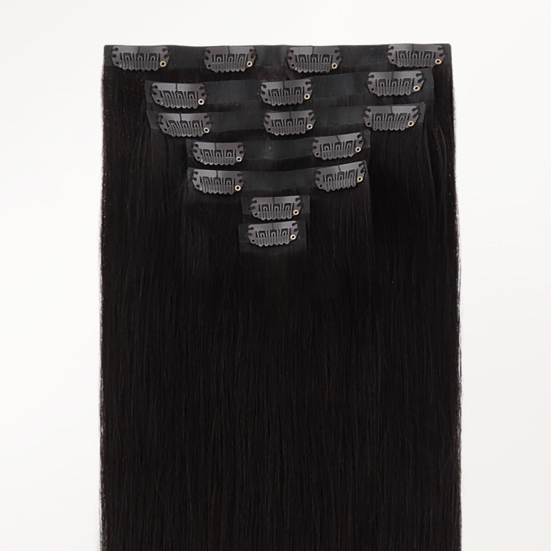 DESCRIPTION Our Invisi Edge PU Clip-In Extensions feature a next-gen injection PU design that minimizes visible surface area, so all anyone sees is flawless, natural hair — not your secret. Made with 100% remy human hair, these silky-smooth strands blend effortlessly with your own. The ultra-thin PU weft lies flat against your scalp, mimicking real hair growth for a barely-there feel and look. And with easy-to-use clips, you can install them at home in minutes — no tools, no damage, no stress. Choose from a wide range of shades, from timeless classics to the trendiest hues of the season. Whether you want subtle volume or a bold transformation, we’ve got your perfect match. Naturally straight but heat-friendly, these extensions are ready for your favorite curls, waves, or sleek styles. Lenght Weight Total Pieces Clip-In Set Includes 18″ 140g 7 1PC 4-Clip Weft – 8 Inch 2PCS 3-Clip Wefts – 6 Inch 2PCS 2-Clip Wefts – 4 Inch 2PCS 1-Clip Wefts – 1.5 Inch 20″ 150g 7 1PC 4-Clip Weft – 8 Inch 2PCS 3-Clip Wefts – 6 Inch 2PCS 2-Clip Wefts – 4 Inch 2PCS 1-Clip Wefts – 1.5 Inch 22″ 160g 7 1PC 4-Clip Weft – 8 Inch 2PCS 3-Clip Wefts – 6 Inch 2PCS 2-Clip Wefts – 4 Inch 2PCS 1-Clip Wefts – 1.5 Inch SHIPPING & RETURNS Free Shipping Worldwide. All prices on the website include FREE standard shipping to applicable countries. You can exchange or refund your order within 30 days. *Hope you could understand that if your order is out of stock in the warehouse, we will ship it directly from the factory. Usually takes 3-5 business days to deliver.