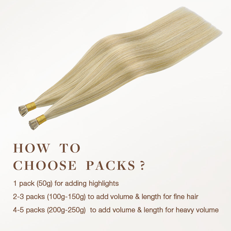 DESCRIPTION High Quality Remy Hair: I tip hair extensions are made of 100% remy human hair, the high quality help to reduce tangling and gives the hair a natural look and feel. The service life is 3-4 months longer than ordinary hair. High Quality Italian Keratin Tip:-Durability: Italian keratin is known for its superior quality and durability. It doesn’t break down easily, ensuring that the extensions stay in place for an extended period.-Gentle on Hair: Italian keratin is gentle on natural hair, reducing the risk of damage when applied or removed properly. Length Weight Quantity Wearing Tools 14″-16″ 50g 100strands/pack (Total 1 pack) Total 120 beads 18″-24″ 50g 50strands/pack (Total 1 pack) Total 60 beads 14″-16″ 100g 100strands/pack (Total 2 packs) Total 240 beads 18″-24″ 100g 50strands/pack (Total 2 packs) Total 120 beads I Tip hair extensions do not require heat or glue, but use micro-bead technology; Simply clamp them gently with pliers to enjoy long-lasting and strong results without causing any damage to your natural hairTo maintain the best results, we recommend re-clamping the micro-beads every 4-6 weeks to extend the life. Kindly Note: Due to different monitors and lights, the actual item you receive may have a slight color difference, which is normal. If you are indecisive about how to choose a matched color, please contact us directly. VIDEO TUTORIAL 1.How to install I Tip hair extensions? Tools You’ll Need:Beads or micro rings (silicone-lined are preferred for better grip)Pliers (for securing the beads)Loop tool or pulling needleSectioning clipsComb (for sectioning and parting the hair)Step 1-Wash and dry your hair thoroughly. Avoid using conditioner on the roots as it can make the hair too slippery for the beads. And ensure your hair is tangle-free by brushing it. Step 2-Divide your hair into sections, starting from the bottom and working your way up. Use clips to hold the upper sections in place. Take a small section of hair where you want to install the extension. Step 3-Take a small section of hair where you want to install the extension. Thread the small section of your natural hair through the loop tool, then pull it through the bead, sliding the bead close to the scalp. Step 4-Insert the I-tip extension into the bead alongside your natural hair. Make sure the tip is secure inside the bead. Step 5-Using the pliers, clamp down on the bead to secure it in place. Ensure it’s tight enough to hold but not too tight to cause discomfort. Step 6-Gently brush your hair to blend the extensions with your natural hair. Style as desired. 2.How to remove I Tip hair extensions?Step 1-Gather the Necessary Tools: Pliers and Fine-tooth Comb. Step 2-Locate the Beads: Find the microbeads that are securing the I-tip extensions to your natural hair. These beads are usually close to the scalp. Step 3-Loosen the Beads: Using the pliers, gently squeeze the bead in the opposite direction of how it was originally flattened. This will open the bead and release the extension. Step 4-Remove the Extensions: Once the bead is open, carefully slide the I-tip extension out of your natural hair. Step 5-Comb Through Your Hair & Wash and Condition: Use a fine-tooth comb to gently detangle your hair and remove any leftover residue, wash and condition your hair. 3.How To Wash Comb your hair with a wide-tooth comb. Wash your hair extensions with warm water and sulfate free conditioner. Wash your hair by holding gently. Do not rub your hair. Comb your hair extensions with a wide-tooth comb from the bottom to the top of the hair extensions. Gently hold the hair with your hand and squeeze the water. Beat the hair with a towel until the hair is dry. Kindly Reminder: Please do not use colored shampoos (such as purple shampoo), to wash very light colored hair extensions. Because this may stain the hair extensions. SHIPPING & RETURNS Free Shipping Worldwide. All prices on the website include FREE standard shipping to applicable countries. You can exchange or refund your order within 30 days. *Hope you could understand that if your order is out of stock in the warehouse, we will ship it directly from the factory. Usually takes 3-5 business days to deliver. FAQ 1. Is GOO GOO hair 100% human hair? Yes, GOO GOO Hair ismade from Remy human hair, which means that the hair cuticles are intact and aligned in the same direction. This reduces tangling and gives the hair a natural look and feel. Our hair extensions undergo a rigorous high-temperature disinfection process with no chemical treatment to ensure they meet the highest standards. 2.How many pieces from I Tip Hair Extensions come in 1 package?I Tip 14”-16” 100 strands each pack, total 50 grams, give 120 beads; 18”-24” 50 strands each pack, total 50 grams, give 60 beads. 3.How many packages of I Tip Hair Extensions can meet my needs?1-2 packs for a natural looking, if you want thick hair effect, we recommend 3-4 packs for adding volume and length 4.Can I dye/color my I Tip Hair Extensions?Human hair can be coloured, but we do not recommend it. Any colouring of the hair extensions is done entirely at your own risk. GOO GOO will not accept any liability for hair extensions that have been coloured or tinted. 5.Can I heat my I Tip Hair Extensions?Yes, you can apply heat to I-tip hair extensions, but it’s important to do so with caution. Here are some tips:-Use a Heat Protectant: Always apply a heat protectant spray before using any heat styling tools. This helps to minimize damage to the hair. -Avoid the Bonds: When using heat near the roots, be careful not to apply heat directly to the bonds (the point where the extensions are attached to your natural hair). High heat can weaken the bonds, causing the extensions to slip or fall out. -Limit Heat Styling: Try to limit how often you use heat on your extensions to maintain their quality for a longer time.