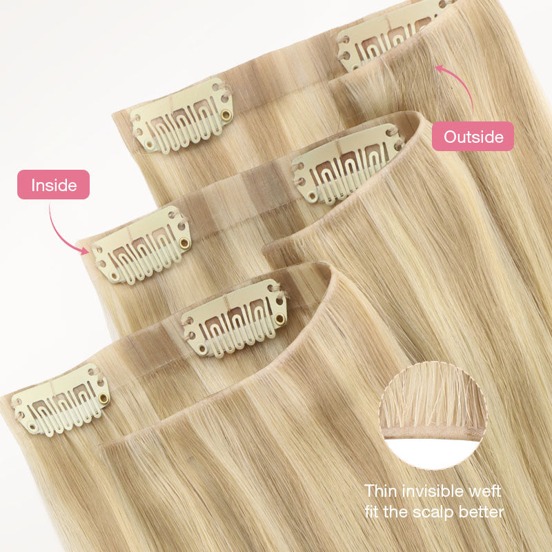 DESCRIPTION Our Invisi Edge PU Clip-In Extensions feature a next-gen injection PU design that minimizes visible surface area, so all anyone sees is flawless, natural hair — not your secret. Made with 100% remy human hair, these silky-smooth strands blend effortlessly with your own. The ultra-thin PU weft lies flat against your scalp, mimicking real hair growth for a barely-there feel and look. And with easy-to-use clips, you can install them at home in minutes — no tools, no damage, no stress. Choose from a wide range of shades, from timeless classics to the trendiest hues of the season. Whether you want subtle volume or a bold transformation, we’ve got your perfect match. Naturally straight but heat-friendly, these extensions are ready for your favorite curls, waves, or sleek styles. Lenght Weight Total Pieces Clip-In Set Includes 18″ 140g 7 1PC 4-Clip Weft – 8 Inch 2PCS 3-Clip Wefts – 6 Inch 2PCS 2-Clip Wefts – 4 Inch 2PCS 1-Clip Wefts – 1.5 Inch 20″ 150g 7 1PC 4-Clip Weft – 8 Inch 2PCS 3-Clip Wefts – 6 Inch 2PCS 2-Clip Wefts – 4 Inch 2PCS 1-Clip Wefts – 1.5 Inch 22″ 160g 7 1PC 4-Clip Weft – 8 Inch 2PCS 3-Clip Wefts – 6 Inch 2PCS 2-Clip Wefts – 4 Inch 2PCS 1-Clip Wefts – 1.5 Inch SHIPPING & RETURNS Free Shipping Worldwide. All prices on the website include FREE standard shipping to applicable countries. You can exchange or refund your order within 30 days. *Hope you could understand that if your order is out of stock in the warehouse, we will ship it directly from the factory. Usually takes 3-5 business days to deliver.