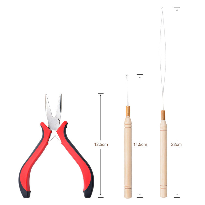 Package: 1 pc plier, 1 pc pulling hook and 1 pc beads device The plier: 12.5cm The pulling hook: 14.5cm The beads device: 22cm Pls use the tools carefully and donot hurt yourself! *Please note due to hygiene reasons this item cannot be returned, unless faulty.