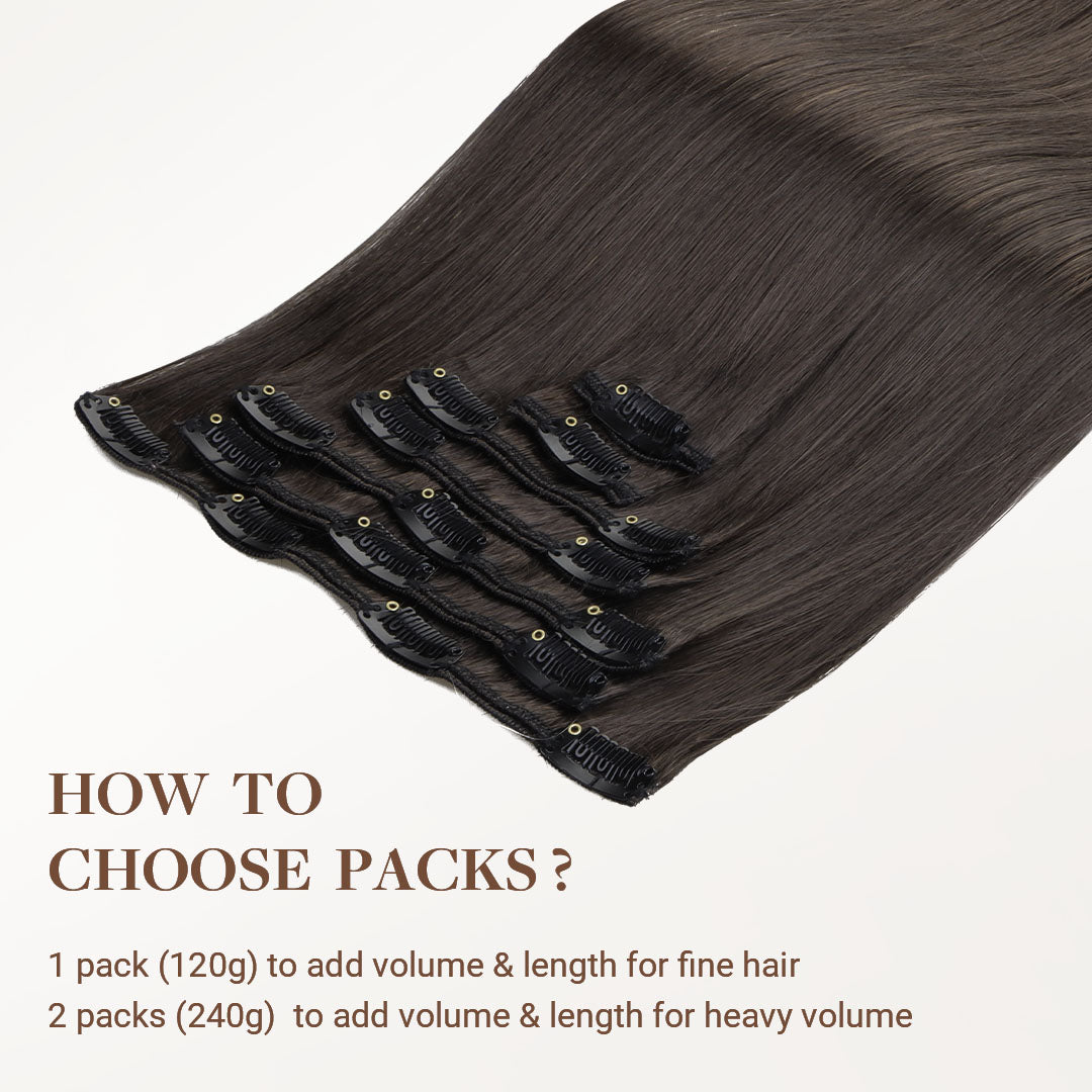 DESCRIPTION –Fuller, longer hair instantly –100% Remy Human Hair –Easy to clip in –Multiple lengths & shades –Heat safe and holds curls –Perfect for all hair type Clip-In Set Includes: 1PC 5-Clip Weft – 8 Inch 2PCS 4-Clip Wefts – 6 Inch 2PCS 2-Clip Wefts – 4 Inch 2PCS 1-Clip Wefts – 2 Inch WEIGHT LENGTH TOTAL PIECES 120G 14”16”18”20”22”24” 7 GOO GOO Hair clip-in hair extensions are the perfect solution for those who want longer, fuller, more beautiful hair instantly. Our hair extensions are easy to clip-on in just minutes, without the hassle of glues, tapes or weaves. There is no commitment, wear them as often as you like. They are easy to use, we have a wide color selection. GOO GOO Hair Clip In Hair Extensions are luxurious extensions that have specially designed small clips with a unique silicone strip that won’t damage your natural hair or scalp. This allows them to stay securely in place without need for hairspray or teasing of your natural hair, even if you have fine or thin hair in most cases. Because all of our extensions are only made with real human hair, they can be washed, styled, blow dried, flat ironed, and/or curled using hot tools, just like your own hair. TUTORIAL How to wear clip in hair extensions? Step 1- Separate your hair: Starting at the lower back section of your head, use a tail comb or index finger to divide(horizontally part)your hair, at the lower back of the head i.e. just below one ear to the second ear. Also, you can start parting even lower, as low as you want to place the first weft. Step 2- Choose a suitable width clip hair and open the clips that are sewed on the weft. Step 3- Prepare the hair wefts and wear on your hair, then check if wear firm. Step 4- Release the hair you held out of the way and create a new parting. Repeat the first to third steps to wear on the other side of the head. Each time leave the extra hair, on top of your head. Step 5- After wear all hair pieces put your hair down and comb neatly. You will have a good looking in an instant. How To Wash Clip in Hair Extensions Comb your hair with a wide-tooth comb. Wash your hair extensions with warm water and sulfate free conditioner. Wash your hair by holding gently. Do not rub your hair. Comb your hair extensions with a wide-tooth comb from the bottom to the top of the hair extensions. Gently hold the hair with your hand and squeeze the water. Beat the hair with a towel until the hair is dry. Kindly Reminder: Please do not use colored shampoos (such as purple shampoo), to wash very light colored hair extensions. Because this may stain the hair extensions. SHIPPING & RETURNS Free Shipping Worldwide. All prices on the website include FREE standard shipping to applicable countries. You can exchange or refund your order within 30 days. FAQ 1. What is the difference between each set of Clip In Hair Extensions?All of our clip in hair extensions are made from the highest grade 100% Remy human hair. The main difference between each type are the weight, construction, and thickness of the extensions.Classic Clip in Hair Extensions 120gThese extensions weigh 120 grams and are the lightest option among the ones you listed. They typically provide a moderate amount of volume and length to your hair.Seamless Clip in Hair ExtensionsSeamless clip-in extensions are designed to have a smooth, seamless appearance when applied. They are made with a weft that is thinner and more flexible, which allows for a more natural blend with your own hair. Classic Clip in Hair Extensions 150gThese extensions weigh 150 grams, offering more hair and volume compared to the 120g option. They are suitable for those who desire a fuller and thicker look.Double Drawn Clip ins 160gAre made with hair strands that have been sorted to ensure that the majority of shorter hairs are removed. This creates extensions that have a consistent thickness from top to bottom and provide a fuller appearance. 2. Can I shower with Clip In Hair Extensions? It’s best to remove your clip-in hair extensions when showering so that they do not fall out. Putting them back in is very easy and takes 5 minutes or less. 3. Is GOO GOO hair 100% human hair?Yes, GOO GOO Hair is made from 100% remy human hair. We take pride in providing our customers with high-quality hair extensions that are sourced ethically and made from genuine human hair. Our hair extensions undergo a rigorous process to ensure that they are of the highest standard. 4. How to keep my Clip In Hair Extensions untangle?Dear, because of dryness, oil, dirt build-up, salt, chlorine, the hair will tangle. Wrong combing method and high temperature iron on the hair also easily cause the hair tangle. We suggest that wash your hair 1-2 times per week, use wide tooth comb on the hair to comb the ends of the hair gently from the bottom, then from the middle, and finally from the root to the ends of the hair silky. or consult your stylist for more help, regularly trim the bottom of the hair and maintain the hair with hair oil. 5. Can I have a colour match? Sure! We would be more than happy to provide you with a colour match. If you could please send over 2-3 pictures of your hair, including the ends to our Colour Match Experts and they will get this information across to you as soon as possible.Please ensure the images are taken in natural light without the use of the flash or any filters and advise which type of extensions you are looking for.Whilst we endeavour to give the best advice for colour matching we will not be held responsible for any disparity in colour matching. Colour Match Swatches can be purchased on our website for a more accurate match. 6. How long should my hair extensions last? The lifespan of GOO GOO Hair extensions is determined by how much you wear them and how well you take care of them. Usually, hair extensions last 6 to 12 months, depending on how often you use them. 7. Can I heat my hair extensions? Our Hair is real human hair and can be hea