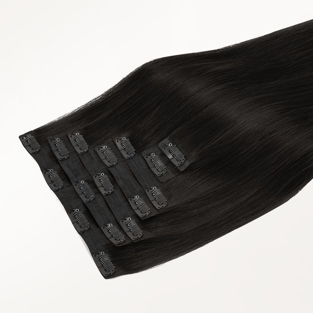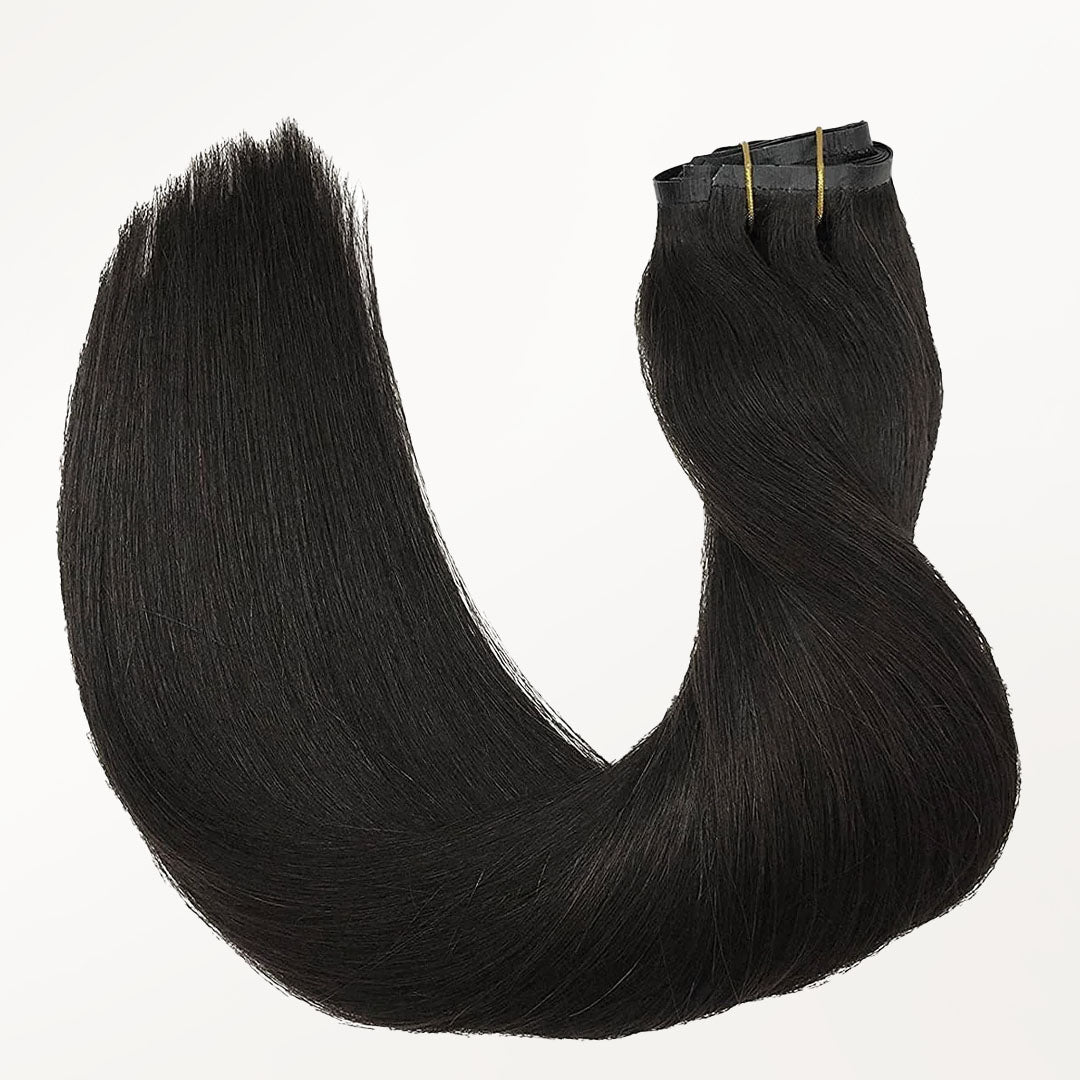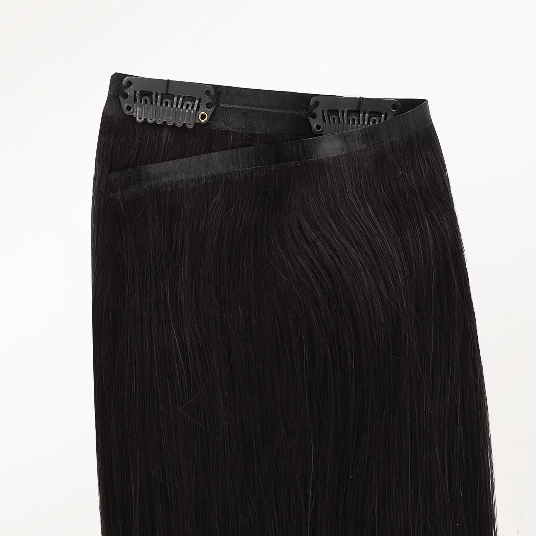 DESCRIPTION –50% thinner & virtually undetectable –Fine & thin hair types –Heat safe & easy to style –Multiple lengths and shades –100% Remy human hair WEIGHT LENGTH TOTAL PIECES CLIN-IN SET INCLUDES 130G 14” 9 1PC 4-Clip Weft – 8 Inch 2PCS 3-Clip Wefts – 6 Inch 4PCS 2-Clip Wefts – 4 Inch 2PCS 1-Clip Wefts – 1.5 Inch 130G 16” 7 1PC 4-Clip Weft – 8 Inch 2PCS 3-Clip Wefts – 6 Inch 2PCS 2-Clip Wefts – 4 Inch 2PCS 1-Clip Wefts – 1.5 Inch 130G 18” 7 1PC 4-Clip Weft – 8 Inch 2PCS 3-Clip Wefts – 6 Inch 2PCS 2-Clip Wefts – 4 Inch 2PCS 1-Clip Wefts – 1.5 Inch 150G 20” 7 1PC 4-Clip Weft – 8 Inch 2PCS 3-Clip Wefts – 6 Inch 2PCS 2-Clip Wefts – 4 Inch 2PCS 1-Clip Wefts – 1.5 Inch 150G 22” 7 1PC 4-Clip Weft – 8 Inch 2PCS 3-Clip Wefts – 6 Inch 2PCS 2-Clip Wefts – 4 Inch 2PCS 1-Clip Wefts – 1.5 Inch 160G 22″ 7 1PC 5-Clip Weft – 8 Inch 2PCS 4-Clip Wefts – 6 Inch 2PCS 2-Clip Wefts – 4 Inch 2PCS 1-Clip Wefts – 1.5 Inch 160G 24″ 7 1PC 4-Clip Weft – 8 Inch 2PCS 3-Clip Wefts – 6 Inch 2PCS 2-Clip Wefts – 4 Inch 2PCS 1-Clip Wefts – 1.5 Inch GOO GOO Hair Seamless clip in hair extensions are 50% thinner at the top and sit flush against the scalp. Seamless clip in hair extensions are the ideal solution if your hair is very fine, thin and has a difficult time concealing traditional clip in hair extensions.This lay-flat design is invisible, discreet and won’t damage your hair. GOO GOO Hair Seamless Clip in hair extensions have comfortable-wear clips that keep your natural hair damage-free, with no bulk, just natural-looking volume and length. It is designed in the same seven-piece weft design as our classic clip in hair extensions. These gorgeous seamless extensions come in all of our multi-tonal shades for instant volume and length at a moment’s notice. VIDEO TUTORIAL How to Wear Seamless Clip in Hair Extensions? Step 1- Prepare the hair wefts, Open the clips that are sewed on the weft, Separate your hair. Step 2- Starting at the lower back section of your head, use a tail comb or index finger to divide(horizontally part)your hair, at the lower back of the head i.e. just below one ear to the second ear. Also, you can start parting even lower, as low as you want to place the first weft. Pick up the clip hair extensions that you need. Step 3- Then repeat 1-2 steps to put the remain pu weft clip in hair extensions in different areas of your head. Step 4- Finally, put down your own hair on the partition to cover the pu hair extensions, and then gently comb the entire hair with a comb. Step 5- Then you will have a beautiful and charming hair looking. SHIPPING & RETURNS Free Shipping Worldwide. All prices on the website include FREE standard shipping to applicable countries. You can exchange or refund your order within 30 days.