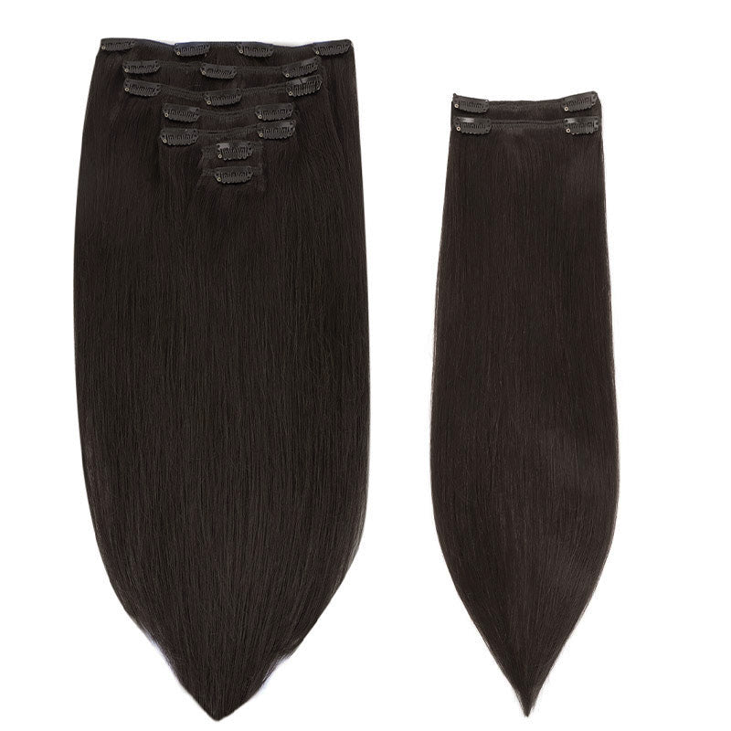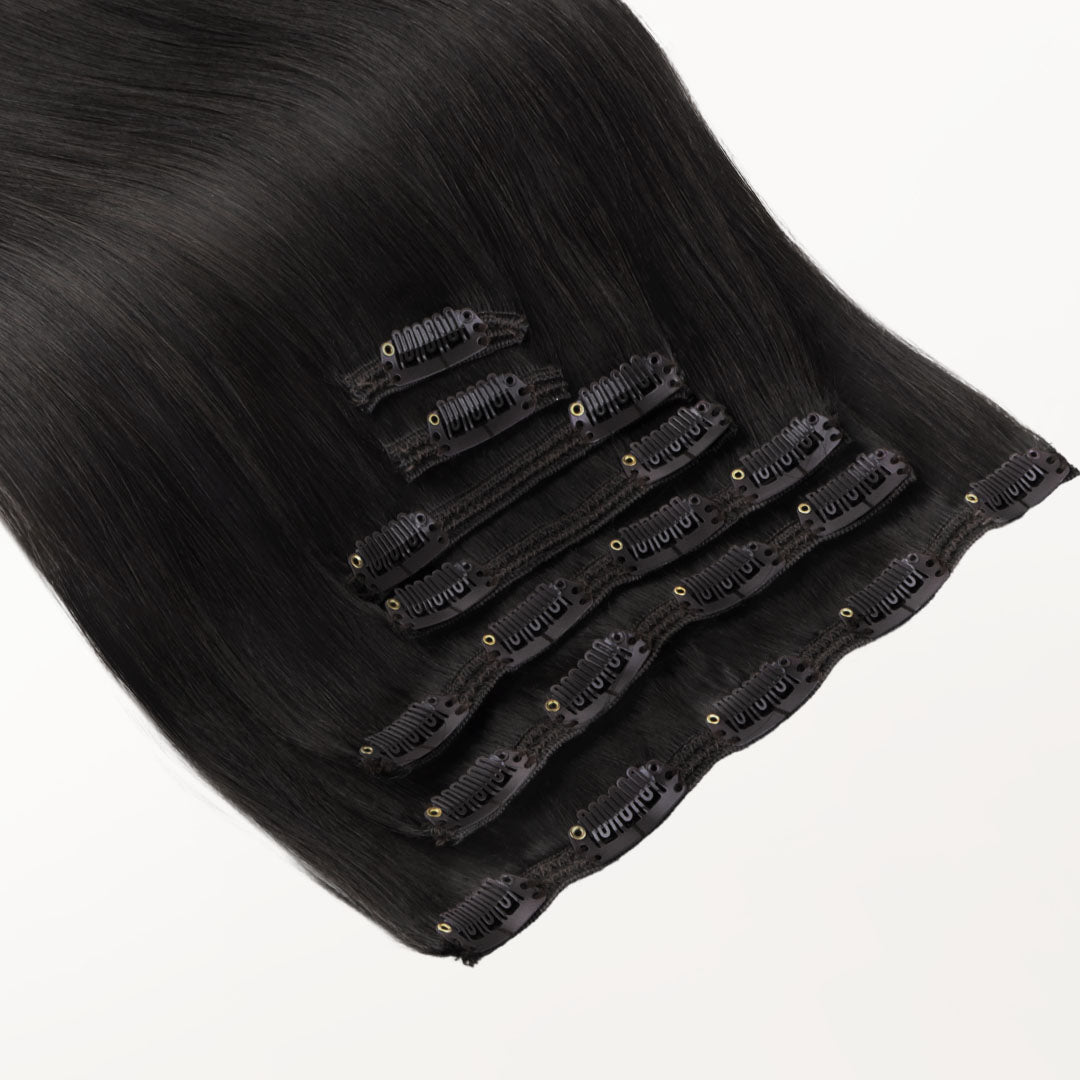 DESCRIPTION –Fuller, longer hair instantly –100% Remy Human Hair –Easy to clip in –Multiple lengths & shades –Heat safe and holds curls –Perfect for all hair type Clip-In Set Includes: One 4-Clip Weft – 8 Inch Two 3-Clip Wefts – 6 Inch Four 2-Clip Wefts – 4 Inch Two 1-Clip Wefts – 2 Inch WEIGHT LENGTH TOTAL PIECES 150G 14” 16” 18” 20” 22” 24” 9 160G 20″ 7 170G 22″ 24″ 7 GOO GOO Hair clip-in hair extensions are the perfect solution for those who want longer, fuller, more beautiful hair instantly. Our hair extensions are easy to clip-on in just minutes, without the hassle of glues, tapes or weaves. There is no commitment, wear them as often as you like. They are easy to use, we have a wide color selection. GOO GOO Hair Clip In Hair Extensions are luxurious extensions that have specially designed small clips with a unique silicone strip that won’t damage your natural hair or scalp. This allows them to stay securely in place without need for hairspray or teasing of your natural hair, even if you have fine or thin hair in most cases. Because all of our extensions are only made with real human hair, they can be washed, styled, blow dried, flat ironed, and/or curled using hot tools, just like your own hair. TUTORIAL How to wear clip in hair extensions? Step 1- Separate your hair: Starting at the lower back section of your head, use a tail comb or index finger to divide(horizontally part)your hair, at the lower back of the head i.e. just below one ear to the second ear. Also, you can start parting even lower, as low as you want to place the first weft. Step 2- Choose a suitable width clip hair and open the clips that are sewed on the weft. Step 3- Prepare the hair wefts and wear on your hair, then check if wear firm. Step 4- Release the hair you held out of the way and create a new parting. Repeat the first to third steps to wear on the other side of the head. Each time leave the extra hair, on top of your head. Step 5- After wear all hair pieces put your hair down and comb neatly. You will have a good looking in an instant. How To Wash Clip in Hair Extensions Comb your hair with a wide-tooth comb. Wash your hair extensions with warm water and sulfate free conditioner. Wash your hair by holding gently. Do not rub your hair. Comb your hair extensions with a wide-tooth comb from the bottom to the top of the hair extensions. Gently hold the hair with your hand and squeeze the water. Beat the hair with a towel until the hair is dry. Kindly Reminder: Please do not use colored shampoos (such as purple shampoo), to wash very light colored hair extensions. Because this may stain the hair extensions. SHIPPING & RETURNS Free Shipping Worldwide. All prices on the website include FREE standard shipping to applicable countries. You can exchange or refund your order within 30 days.