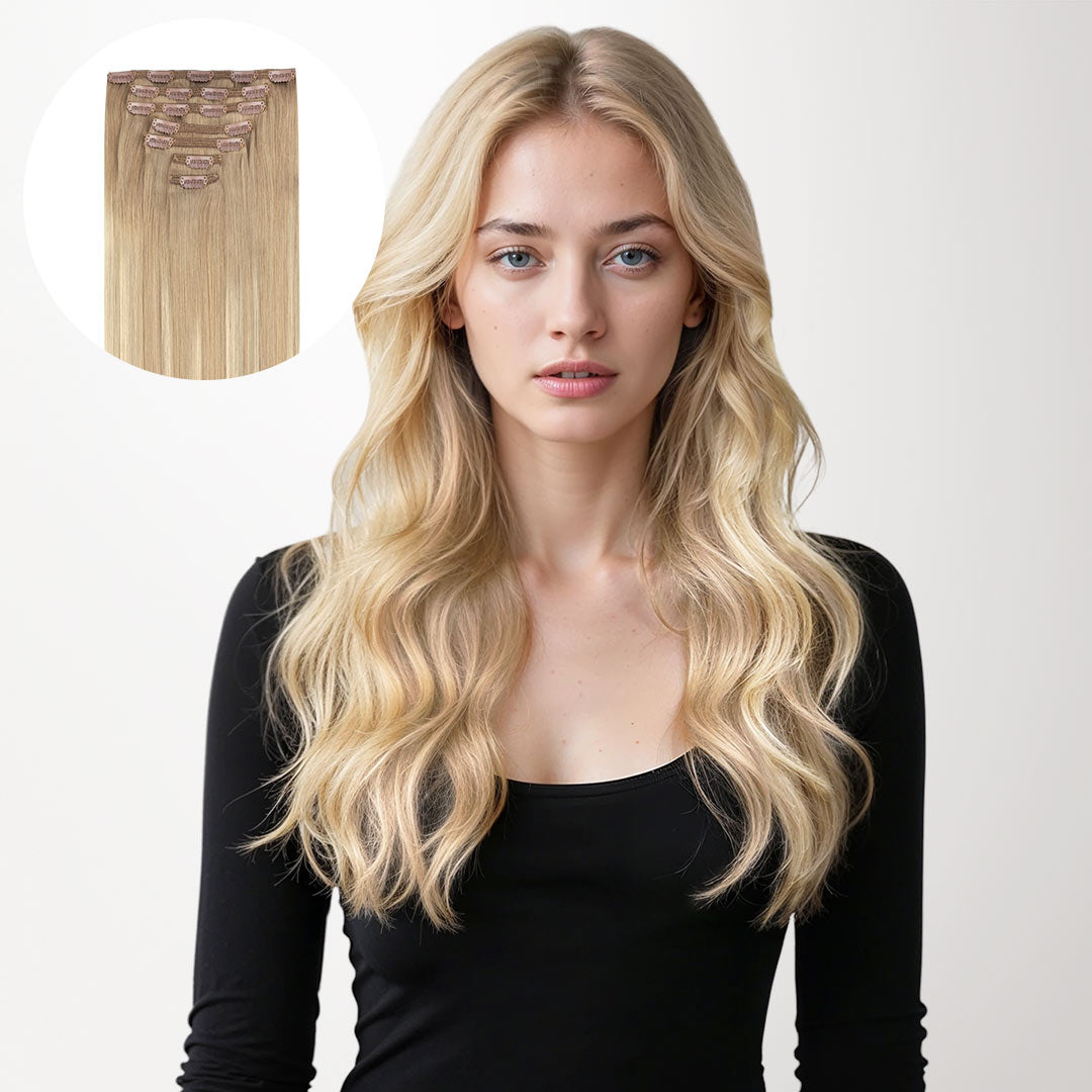 DESCRIPTION –Fuller, longer hair instantly –100% Remy Human Hair –Easy to clip in –Multiple lengths & shades –Heat safe and holds curls –Perfect for all hair type Clip-In Set Includes: One 4-Clip Weft – 8 Inch Two 3-Clip Wefts – 6 Inch Four 2-Clip Wefts – 4 Inch Two 1-Clip Wefts – 2 Inch WEIGHT LENGTH TOTAL PIECES 150G 14” 16” 18” 20” 22” 24” 9 160G 20″ 7 170G 22″ 24″ 7 GOO GOO Hair clip-in hair extensions are the perfect solution for those who want longer, fuller, more beautiful hair instantly. Our hair extensions are easy to clip-on in just minutes, without the hassle of glues, tapes or weaves. There is no commitment, wear them as often as you like. They are easy to use, we have a wide color selection. GOO GOO Hair Clip In Hair Extensions are luxurious extensions that have specially designed small clips with a unique silicone strip that won’t damage your natural hair or scalp. This allows them to stay securely in place without need for hairspray or teasing of your natural hair, even if you have fine or thin hair in most cases. Because all of our extensions are only made with real human hair, they can be washed, styled, blow dried, flat ironed, and/or curled using hot tools, just like your own hair. TUTORIAL How to wear clip in hair extensions? Step 1- Separate your hair: Starting at the lower back section of your head, use a tail comb or index finger to divide(horizontally part)your hair, at the lower back of the head i.e. just below one ear to the second ear. Also, you can start parting even lower, as low as you want to place the first weft. Step 2- Choose a suitable width clip hair and open the clips that are sewed on the weft. Step 3- Prepare the hair wefts and wear on your hair, then check if wear firm. Step 4- Release the hair you held out of the way and create a new parting. Repeat the first to third steps to wear on the other side of the head. Each time leave the extra hair, on top of your head. Step 5- After wear all hair pieces put your hair down and comb neatly. You will have a good looking in an instant. How To Wash Clip in Hair Extensions Comb your hair with a wide-tooth comb. Wash your hair extensions with warm water and sulfate free conditioner. Wash your hair by holding gently. Do not rub your hair. Comb your hair extensions with a wide-tooth comb from the bottom to the top of the hair extensions. Gently hold the hair with your hand and squeeze the water. Beat the hair with a towel until the hair is dry. Kindly Reminder: Please do not use colored shampoos (such as purple shampoo), to wash very light colored hair extensions. Because this may stain the hair extensions. SHIPPING & RETURNS Free Shipping Worldwide. All prices on the website include FREE standard shipping to applicable countries. You can exchange or refund your order within 30 days.