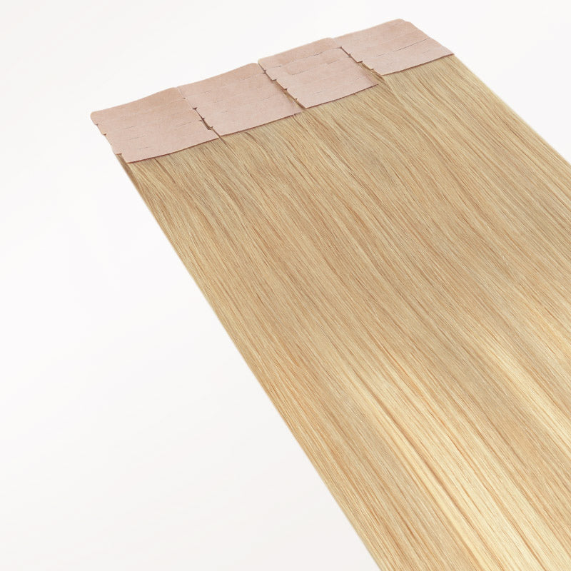 DESCRIPTION Designed to be quick to install, easy to remove, and simple re-apply, we use discreet and lightweight tape adhesive tabs. Once fitted GOO GOO tape in hair extensions should last between 8-10 weeks before needing to be re-positioned. With our tape in hair extensions human hair, you can achieve any style you like, whether you want a sleek ponytail or a full body blowout. You can also wash, cut, and dye tape in hair extensions just like your own hair. And, as well as their versatility, style and ease, GOO GOO hair tape in hair extensions are the least damaging type of semi-permanent extensions and are very discreet as they lay flat to your head. –100% human remy hair – can be re-applied –Easy to apply in under 30 minutes –High quality,USA-made adhesive holds up to 8 weeks –Double Sided Tape–More Strong and Durable –NON-damaging, lightweight, and comfortable in the hair –3-4 packs to add the length, 2-3 packs to add the thickness. –Suitable for all hair types WEIGHT LENGTH TOTAL PIECES 50G 14” 16” 18” 20” 22” 24” 20pcs/pack (Total 1 pack) 100G 14” 16” 18” 20” 22” 24” 20pcs/pack (Total 2 packs) TUTORIAL How to Wear tape in Hair Extensions? Step 1- Hair extensions must be applied to washed clean hair. Part your hair in desired area where extension needs to be applied. Step 2- Rip off the cover on the tape extension to expose the super tape. Line up extension directly and attach by pressing to piece of desired hair. Step 3- Double the thickness by adding another layer to the underneath of the piece. Step 4- Two sticky sides face each other and the section of hair will be in the middle. Like a sandwich. Step 5- Please Note: Once hair is in, use your flat iron on a low heat setting. Please control the temperature within 350 degrees Fahrenheit. (Please don’t use too high temperature, because that may cause the tape to melt.) Then heating the tapes 5-6s one time, repeating 5-6 times. You are finished! Your hair is now thick and seamless. How to Remove tape in Hair Extensions? Step 1- Use with a professional product for taking out the tapes on the contact part of the hair and tape. Step 2- Wait for one minute, gently peel off the tape. (Don’t tear the tape too hard, because that might damage your own hair.) Step 3- Then you can wash your own hair to keep your hair clean and you could replace with new tapes. How To Wash Comb your hair with a wide-tooth comb. Wash your hair extensions with warm water and sulfate free conditioner. Wash your hair by holding gently. Do not rub your hair. Comb your hair extensions with a wide-tooth comb from the bottom to the top of the hair extensions. Gently hold the hair with your hand and squeeze the water. Beat the hair with a towel until the hair is dry. Kindly Reminder: Please do not use colored shampoos (such as purple shampoo), to wash very light colored hair extensions. Because this may stain the hair extensions. SHIPPING & RETURNS Free Shipping Worldwide. All prices on the website include FREE standard shipping to applicable countries. You can exchange or refund your order within 30 days.
