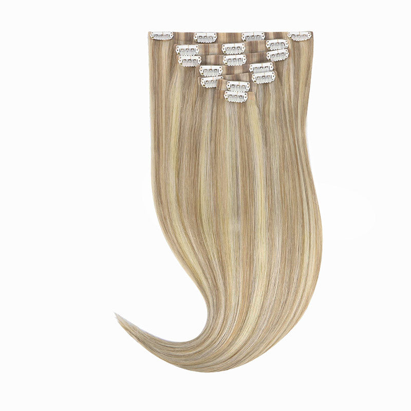 DESCRIPTION –50% thinner band& Invisible edge –Fine & thin hair types –Heat safe & easy to style –Multiple lengths and shades –100% Remy human hair Clip-In Set Includes: One 4-Clip Weft – 8 Inch Two 3-Clip Wefts – 6 Inch Two 2-Clip Wefts – 4 Inch Two 1-Clip Wefts – 1.5 Inch WEIGHT LENGTH TOTAL PIECES 130G 14” 7 130G 16” 7 130G 18” 7 150G 20” 7 150G 22” 7 GOO GOO Hair Seamless clip in hair extensions are 50% thinner at the top and sit flush against the scalp. Seamless clip in hair extensions are the ideal solution if your hair is very fine, thin and has a difficult time concealing traditional clip in hair extensions.This lay-flat design is invisible, discreet and won’t damage your hair. GOO GOO Hair Seamless Clip in hair extensions have comfortable-wear clips that keep your natural hair damage-free, with no bulk, just natural-looking volume and length. It is designed in the same seven-piece weft design as our classic clip in hair extensions. These gorgeous seamless extensions come in all of our multi-tonal shades for instant volume and length at a moment’s notice. VIDEO TUTORIAL How to Wear Seamless Clip in Hair Extensions? Step 1- Prepare the hair wefts, Open the clips that are sewed on the weft, Separate your hair. Step 2- Starting at the lower back section of your head, use a tail comb or index finger to divide(horizontally part)your hair, at the lower back of the head i.e. just below one ear to the second ear. Also, you can start parting even lower, as low as you want to place the first weft. Pick up the clip hair extensions that you need. Step 3- Then repeat 1-2 steps to put the remain pu weft clip in hair extensions in different areas of your head. Step 4- Finally, put down your own hair on the partition to cover the pu hair extensions, and then gently comb the entire hair with a comb. Step 5- Then you will have a beautiful and charming hair looking. SHIPPING & RETURNS Free Shipping Worldwide. All prices on the website include FREE standard shipping to applicable countries. You can exchange or refund your order within 30 days. FAQ 1. Is GOO GOO hair 100% human hair? Yes, GOO GOO Hair is made from 100% remy human hair. We take pride in providing our customers with high-quality hair extensions that are sourced ethically and made from genuine human hair. Our hair extensions undergo a rigorous process to ensure that they are of the highest standard. 2. What is the difference between each set of Clip In Hair Extensions?All of our clip in hair extensions are made from the highest grade 100% Remy human hair. The main difference between each type are the weight, construction, and thickness of the extensions. Classic Clip in Hair Extensions 120gThese extensions weigh 120 grams and are the lightest option among the ones you listed. They typically provide a moderate amount of volume and length to your hair.Seamless Clip in Hair ExtensionsSeamless clip-in extensions are designed to have a smooth, seamless appearance when applied. They are made with a weft that is thinner and more flexible, which allows for a more natural blend with your own hair. Classic Clip in Hair Extensions 150gThese extensions weigh 150 grams, offering more hair and volume compared to the 120g option. They are suitable for those who desire a fuller and thicker look.Double Drawn Clip ins 160gAre made with hair strands that have been sorted to ensure that the majority of shorter hairs are removed. This creates extensions that have a consistent thickness from top to bottom and provide a fuller appearance. 3. How many pieces from Seamless Clip in Hair Extensions come in 1 package?Seamless Clip ins one pack is 7 pieces and length 14 to 18 inches weight is total 130 grams, length 20 to 22 inches weight is total 130 grams. 4. Can I dye/color my Seamless Clip in Hair Extensions?Human hair can be coloured, but we do not recommend it. Any colouring of the hair extensions is done entirely at your own risk.Goo Goo will not accept any liability for hair extensions that have been coloured or tinted. 5. Can I heat my Seamless Clip in Hair Extensions?Our Hair is real human hair and can be heat styled using a flat iron, curler, blow dried or air dried just like your own hair. Keep in mind that use of heat styling and other hair products will cause damage to your extensions over time. Do not leave on heat for extended time periods, extensions can burn just like your own hair. 6. Do Seamless Clip in Hair Extensions get curly after washing or getting wet?It will be a little curly after wash, GOO GOO’s hair is 100% human hair. It can be straightened. 7. Can I shower with Seamless Clip in Hair Extensions? It’s best to remove your clip-in hair extensions when showering so that they do not fall out. Putting them back in is very easy and takes 5 minutes or less. 8. How to keep my Seamless Clip in Hair Extensions untangle? Dear, because of dryness, oil, dirt build-up, salt, chlorine, the hair will tangle. Wrong combing method and high temperature iron on the hair also easily cause the hair tangle. We suggest that wash your hair 1-2 times per week, use wide tooth comb on the hair to comb the ends of the hair gently from the bottom, then from the middle, and finally from the root to the ends of the hair silky. or consult your stylist for more help, regularly trim the bottom of the hair and maintain the hair with hair oil.